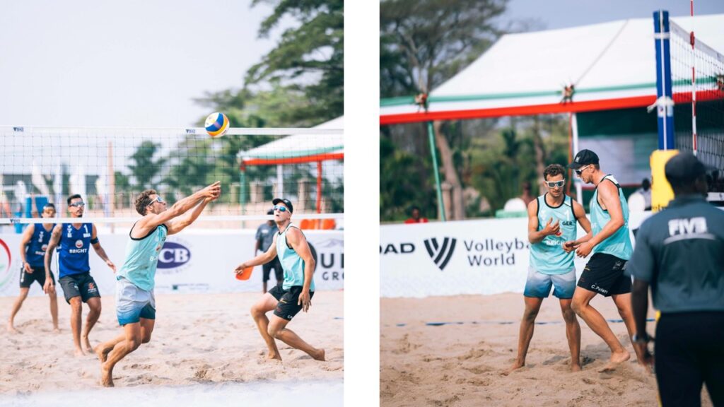 Bei großer Hitze spielten Charlie Peters und ein noch von den Reisestrapazen gezeichneter Noah Lachmund gegen das brasilianische Team Gabriel Zuliani und Nicolas Capretti Schosler. Das intensive Spiel verloren Peters/Lachmund äußerst knapp in drei Sätzen mit 1:2 (21:17, 14:21, 12:15). Trotz Stress im Vorfeld machten beide ein gutes Spiel. Zuliani und Capretti Schosler hingegen dominierten später auf dem heißen Sand des Eden Garden Resort und besiegten die Ungarn Arthúr Hajós und Bence Attila Stréli klar in zwei Sätzen mit 2:0 (21:15; 21:14).