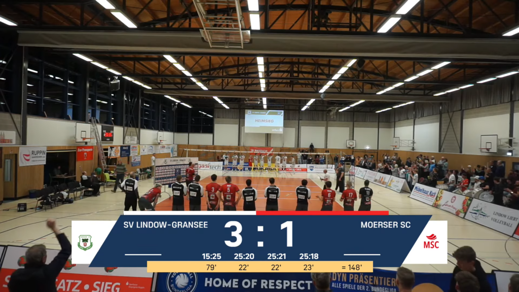 Überragender Spieler der Gastgeber war Charlie Peters. Der Diagonalangreifer spielte sich in einen Rausch. „Charlie erwischte einen ganz starken Tag“, bilanzierte Coach Björn Andrae. „Er hat unglaublich viele Bälle totgemacht.“ Nach vier Sätzen hatte Lindow-Gransee vor 200 Zuschauern doch noch alle Punkte geholt, weil diese Partie nach dem 15:25 mit 25:20, 25:21 und 25:18 gedreht wurde. Charlie Peters und Lukas Schattenberg vom Moerser SC wurden von den Trainer als Wertvollste Spieler benannt und ausgezeichnet.
